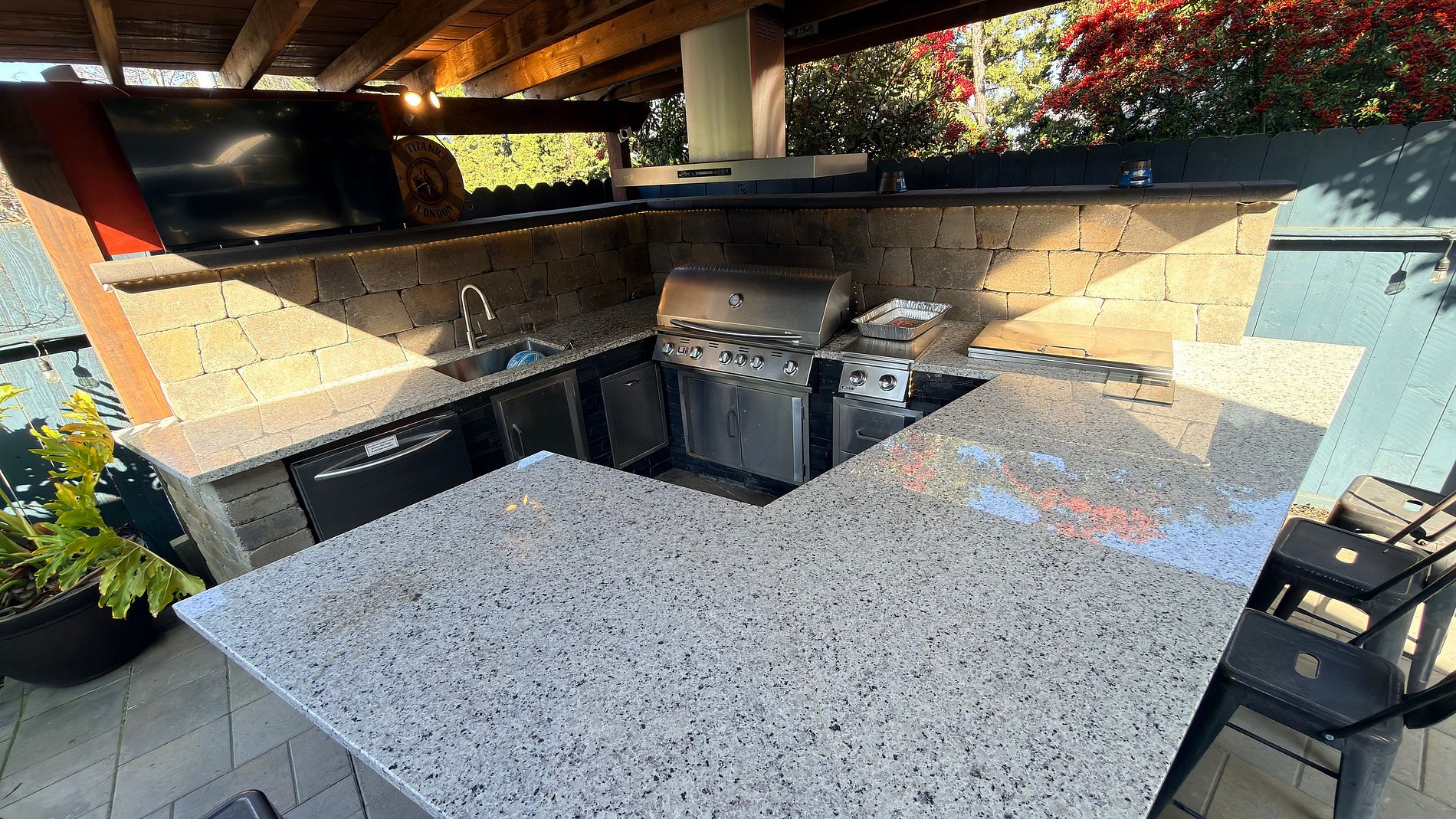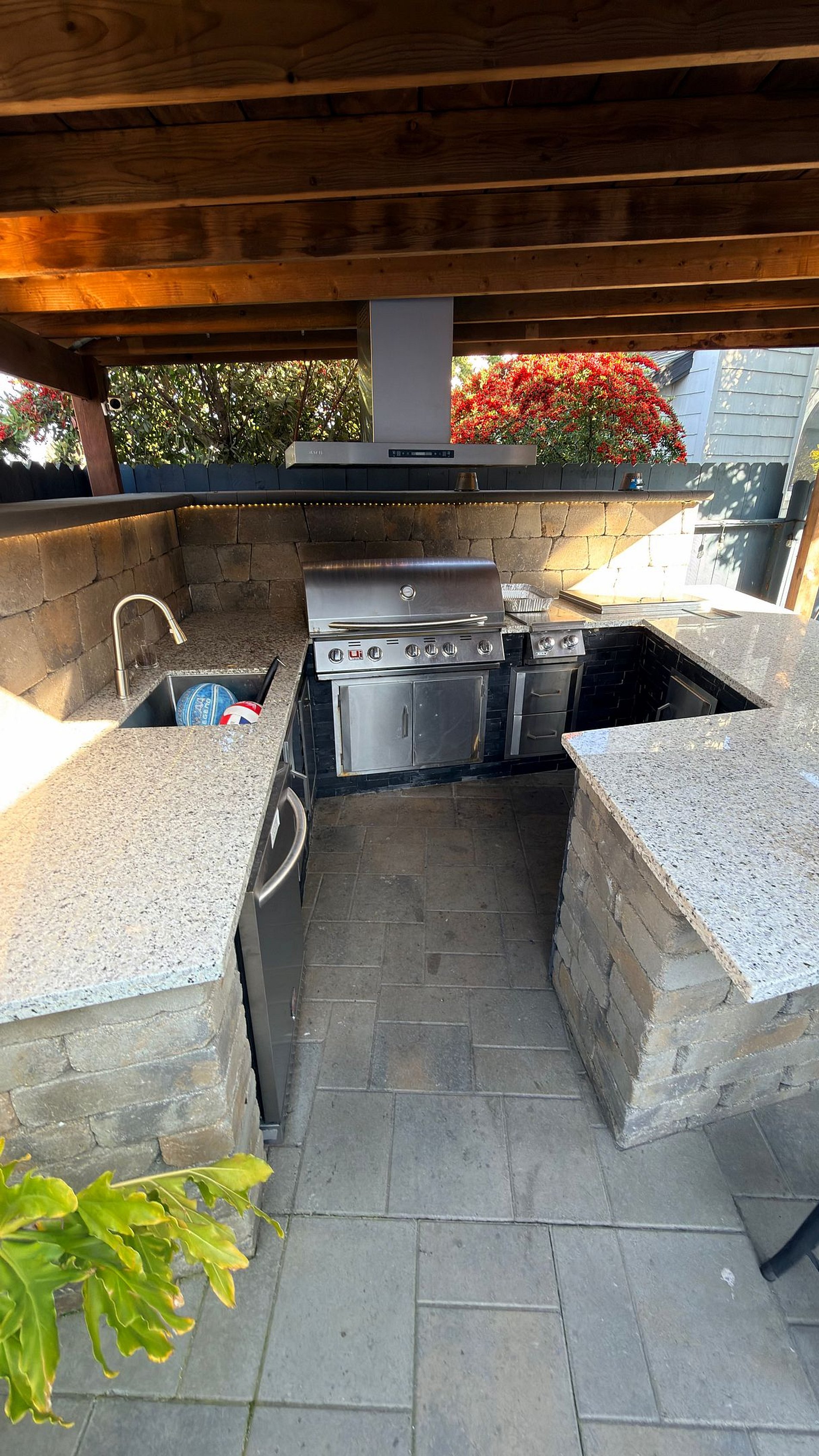 Step outside into your own private resort. Our spectacular covered outdoor gourmet kitchen features a built-in BBQ, a refrigerator, and two outdoor Smart TVs so you never miss a beat. After dinner, head over to the luxury hot tub to soak under the California stars. This is outdoor living at its finest.