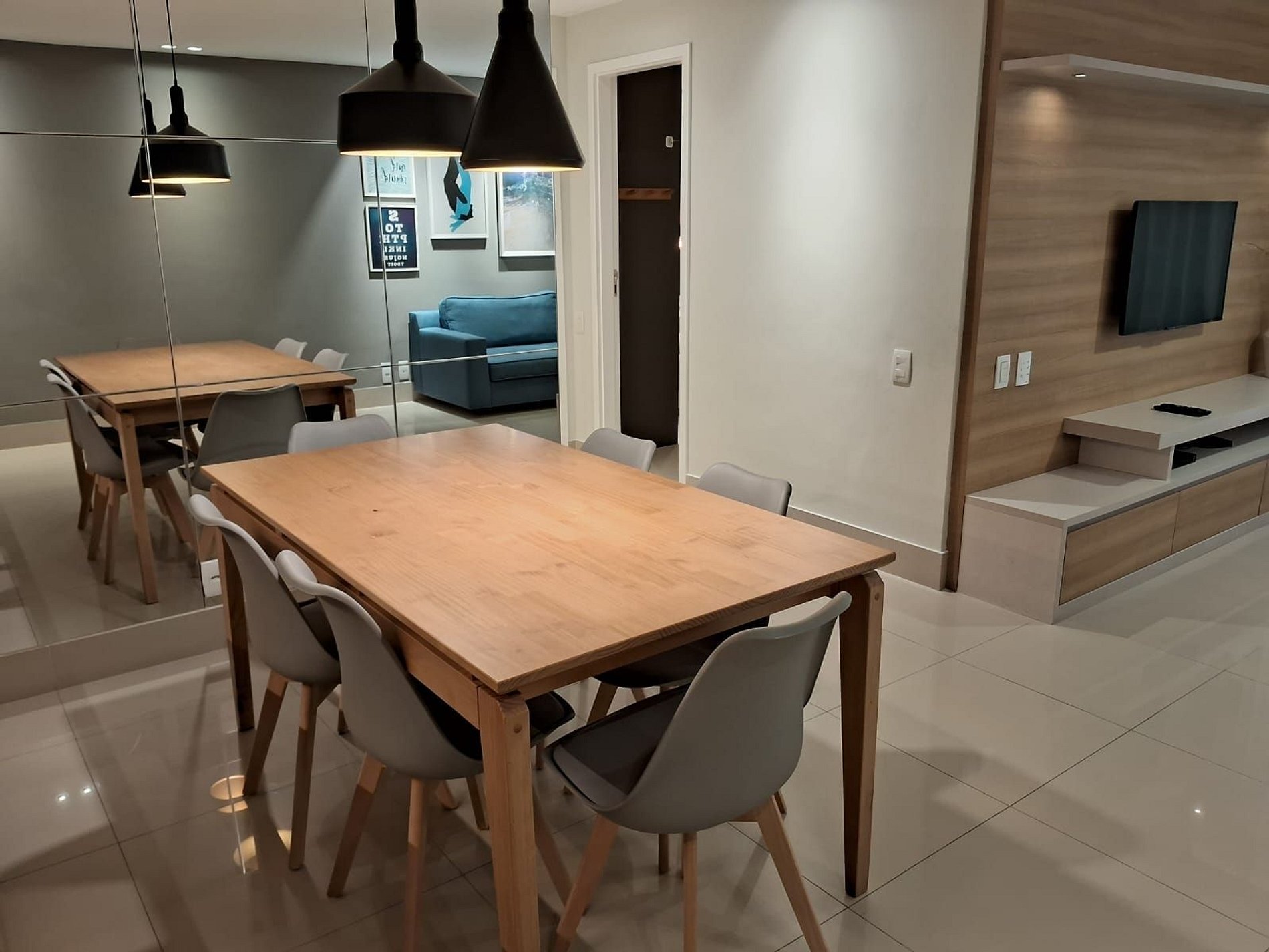 • Sala integrada à sala de jantar, ideal para momentos em família ou entre amigos.