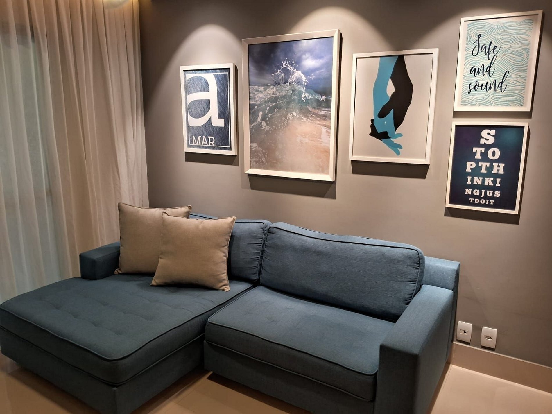 Área de estar com sofá/cadeira
