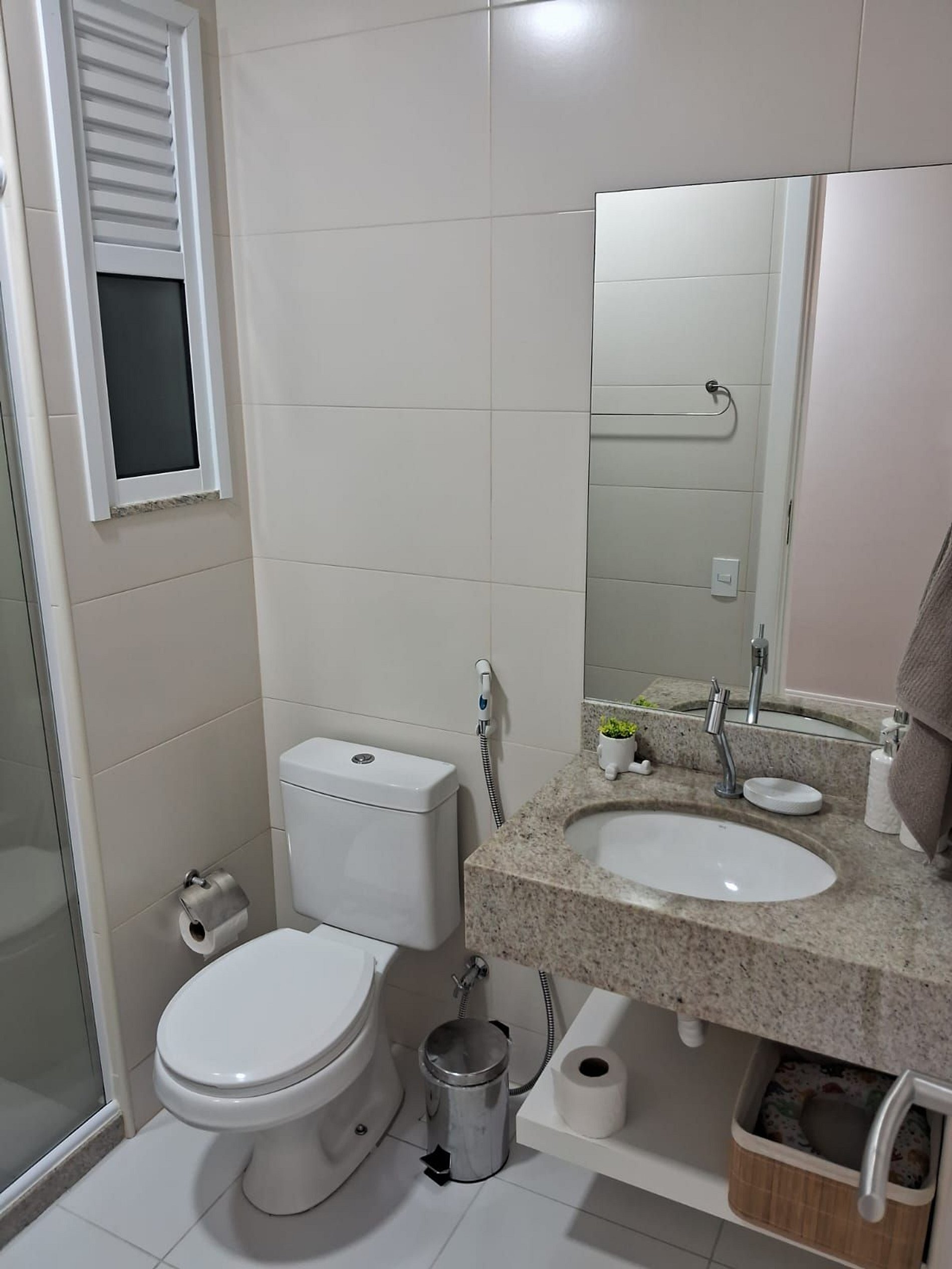 • Banheiro social amplo com blindex.