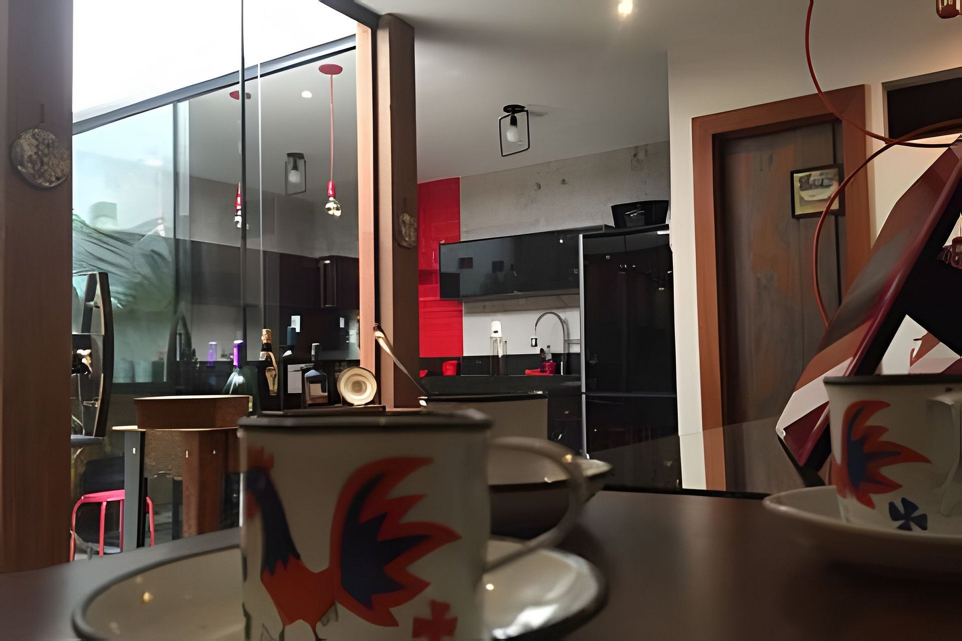 • No primeiro andar, os hóspedes compartilham uma charmosa área comum com cozinha completa, sala de estar, sala de jantar e banheiro social.