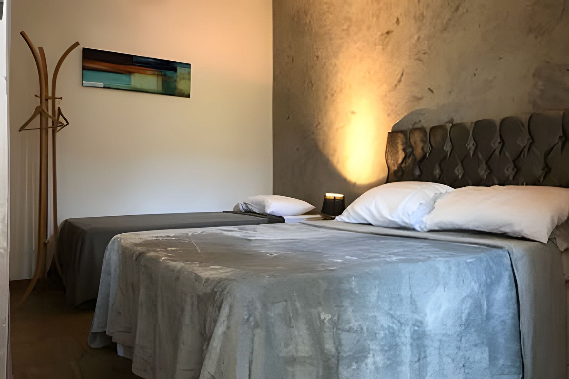 SUÍTE STANDARD: • 01 cama de casal | Smart TV com Netflix • Ar-condicionado Split + vent. de teto • Frigobar • Banheiro privativo com aquecimento solar | Armário compacto