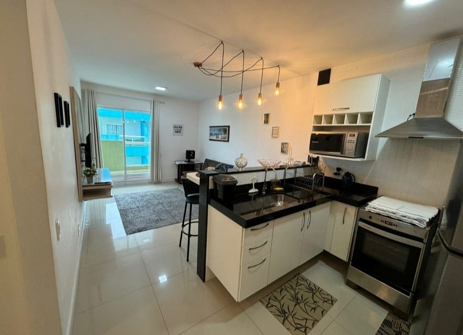 O Golden Lake Residence oferece varanda com vista para lagoa e piscina, área de estar, cozinha americana totalmente equipada com micro-ondas, fogão, cafeteira, liquidificador, sanduicheira, geladeira, uma suíte e um banheiro social. O apartamento é aconchegante, espaçoso e todo mobiliado, com tv 42 polegadas, pronto para receber o hóspede!