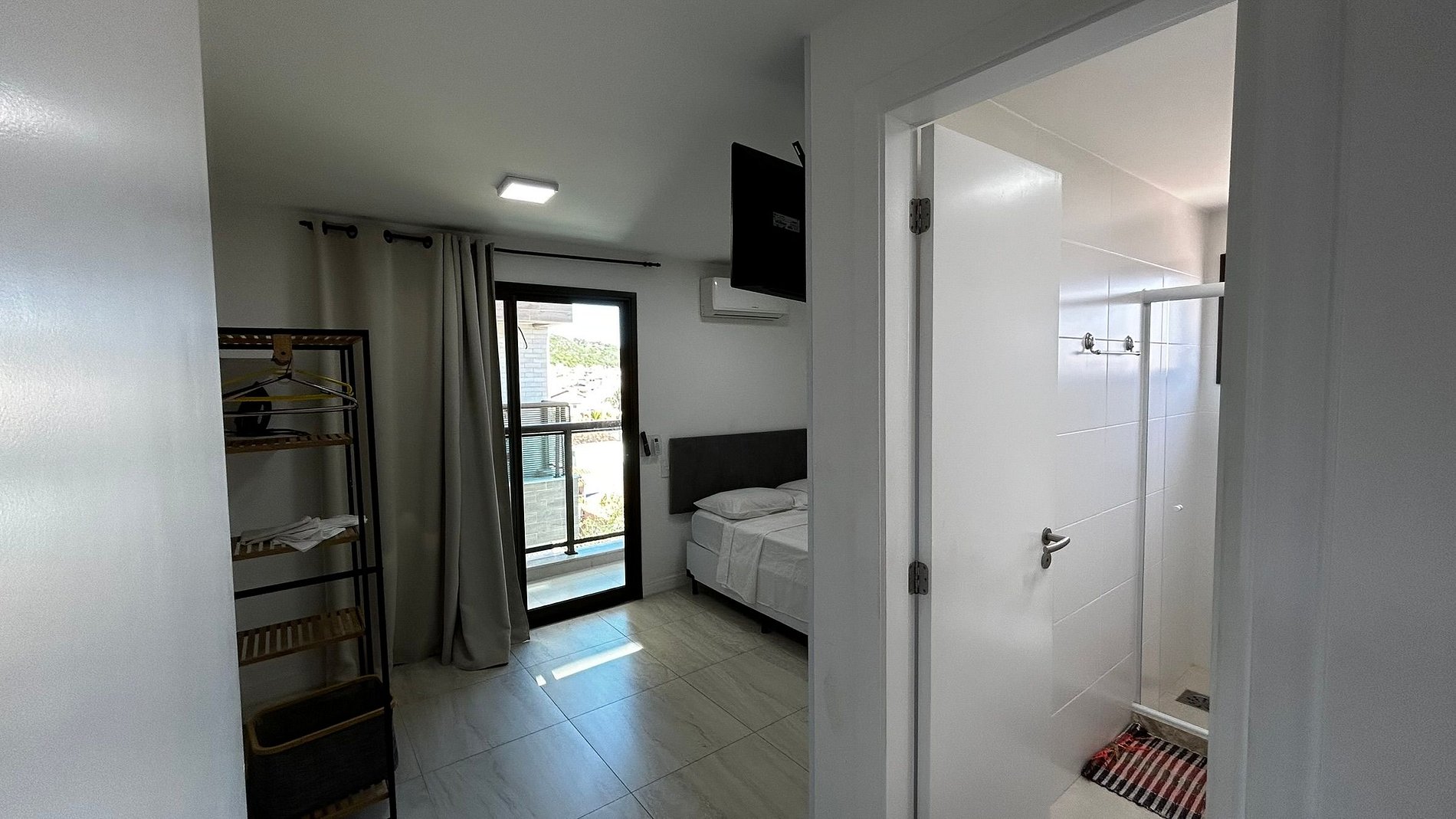 * Suíte com varanda privativa, proporcionando vista lateral para o mar.