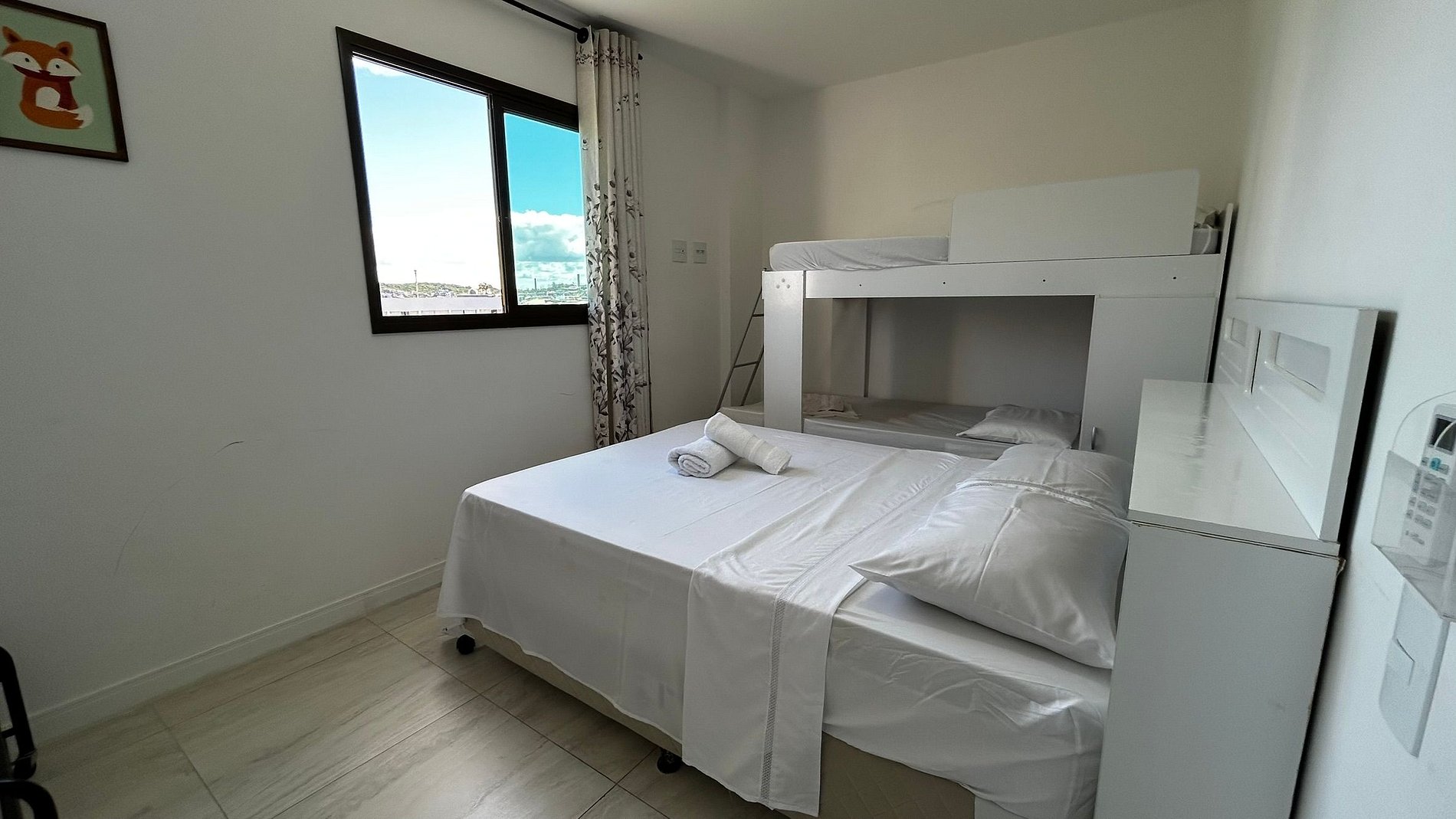 * Segundo quarto com cama de casal e beliche, ideal para famílias ou grupos.