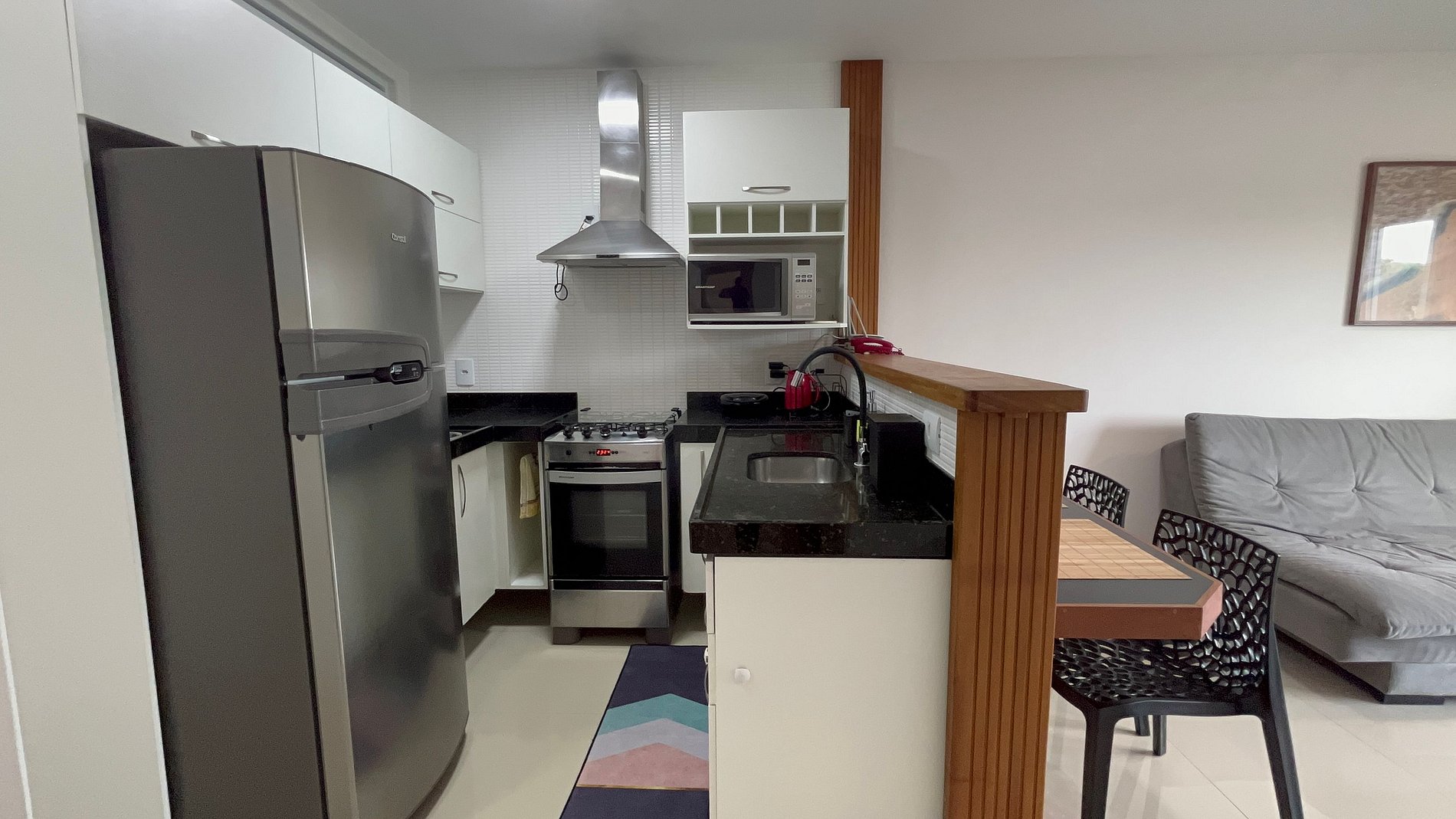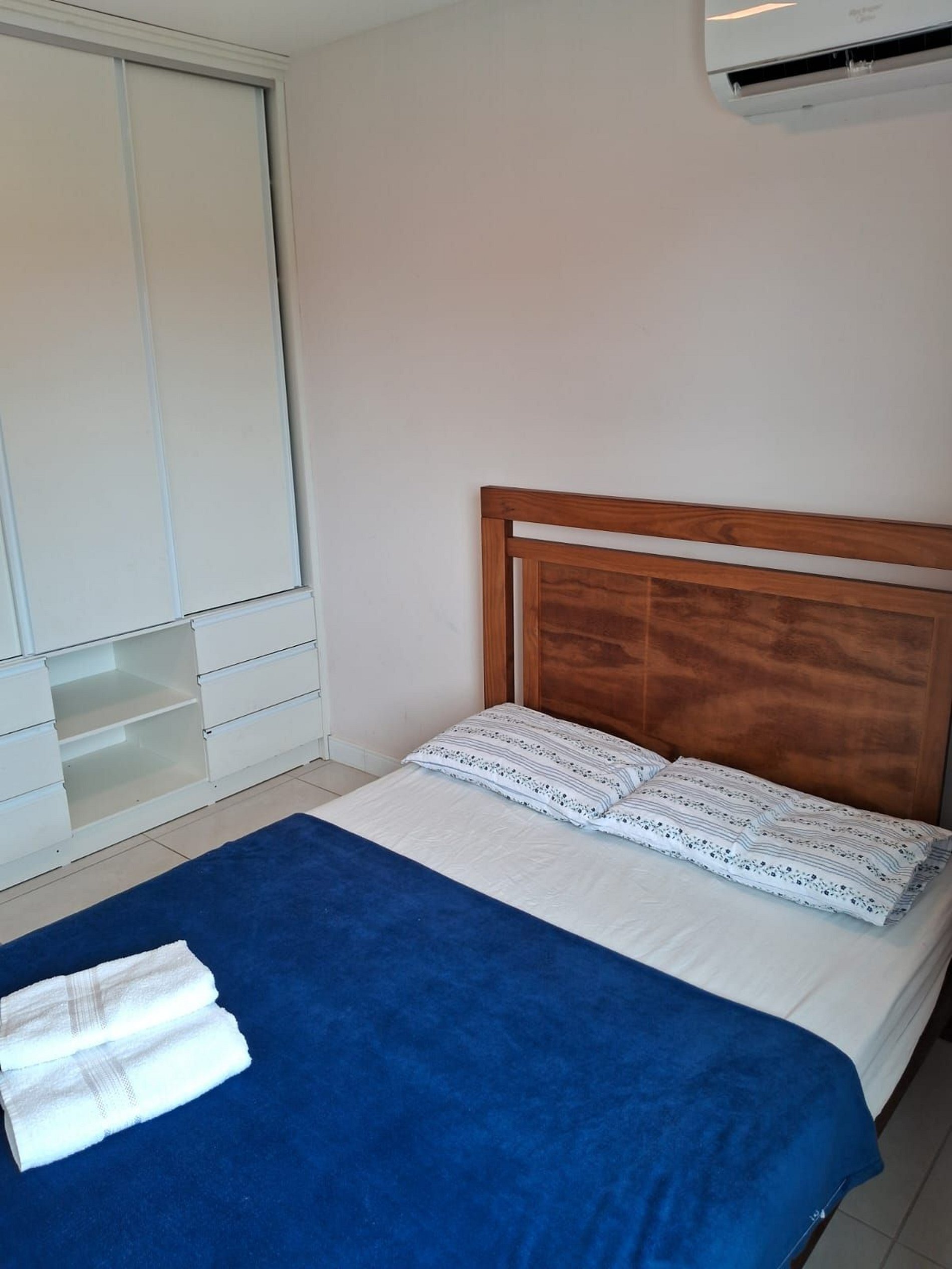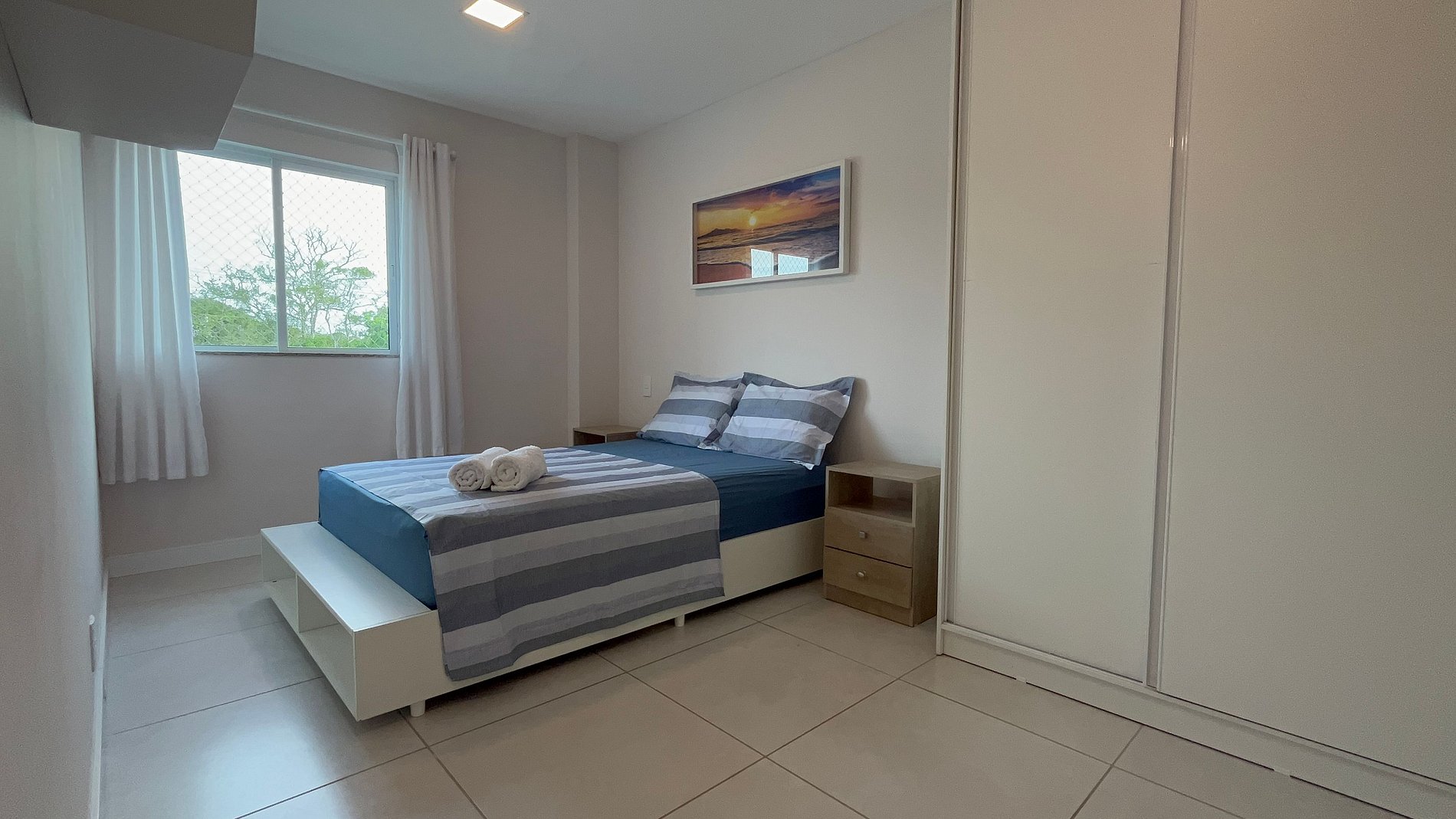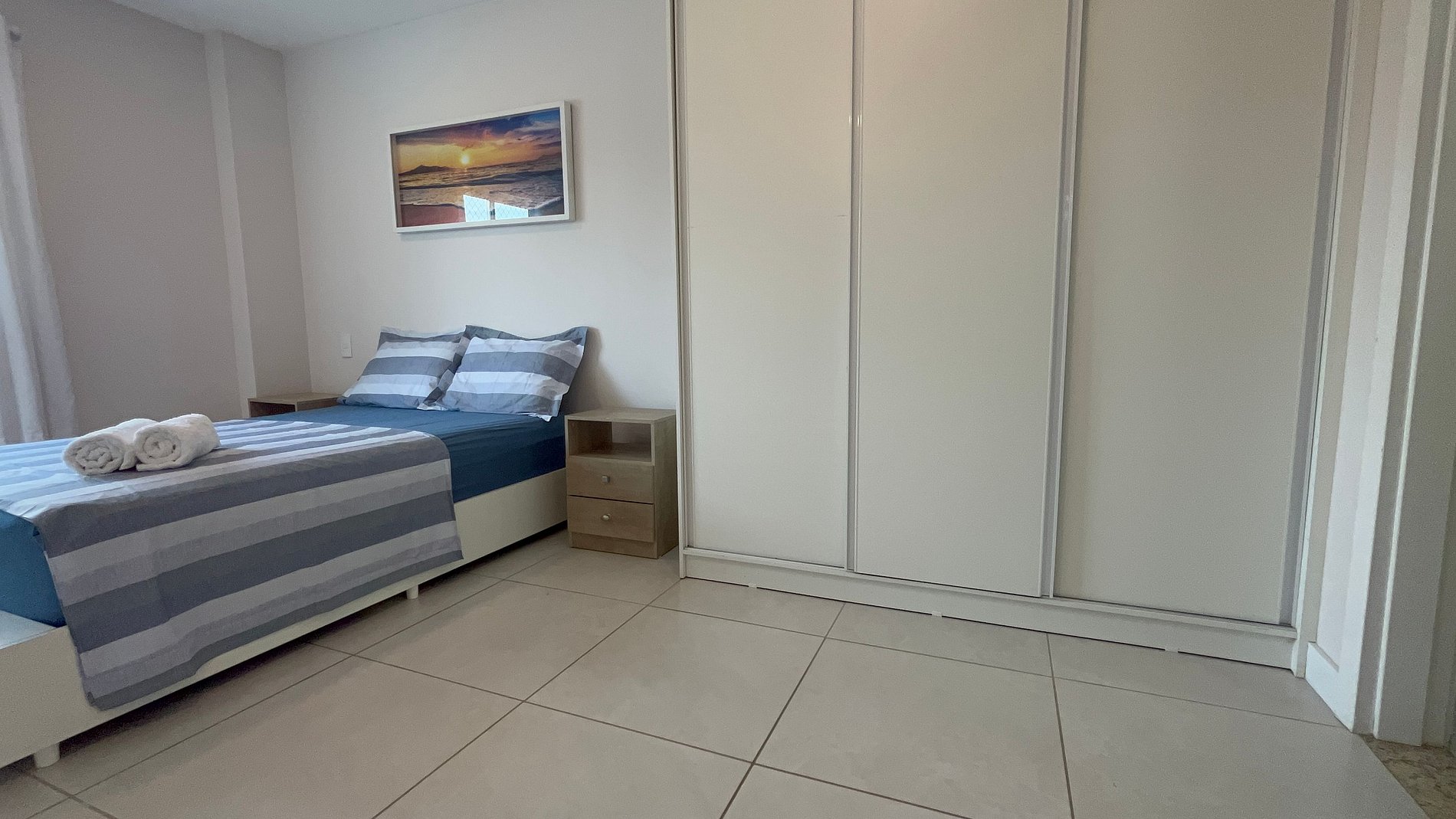 Apartamento no 2º andar para até 6 pessoas, com varanda. 2 quartos com ar-condicionado: 1 suíte com cama de casal e 1 quarto com cama de casal e auxiliar de solteiro. Sala com sofá cama e Smart TV. Cozinha equipada em conceito aberto com ilha para 3 lugares. Banheiro social. Roupas de cama e banho inclusas.