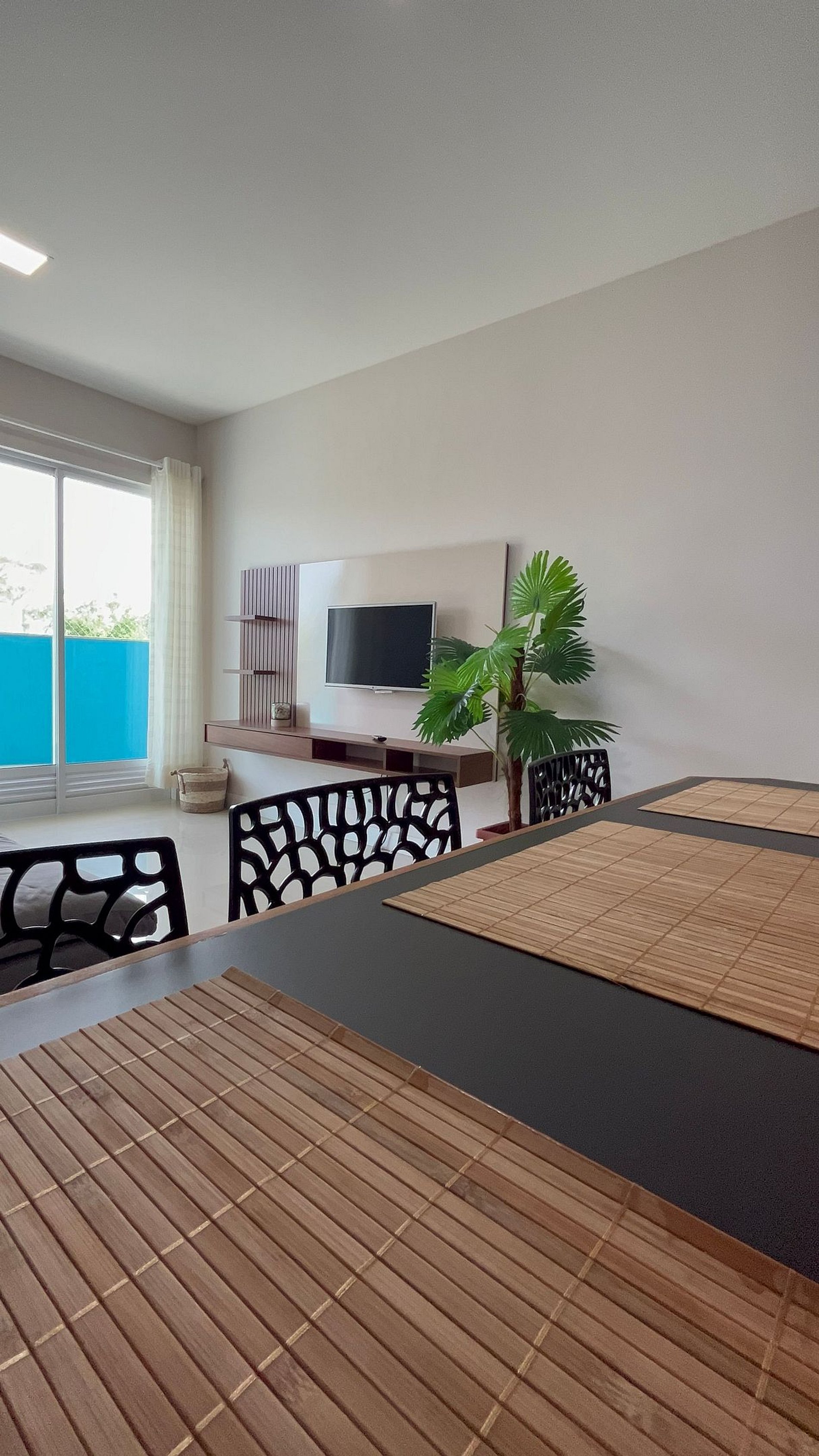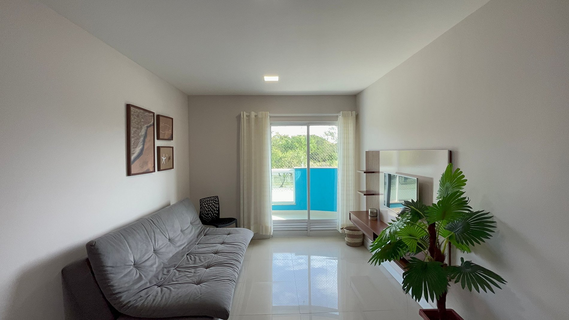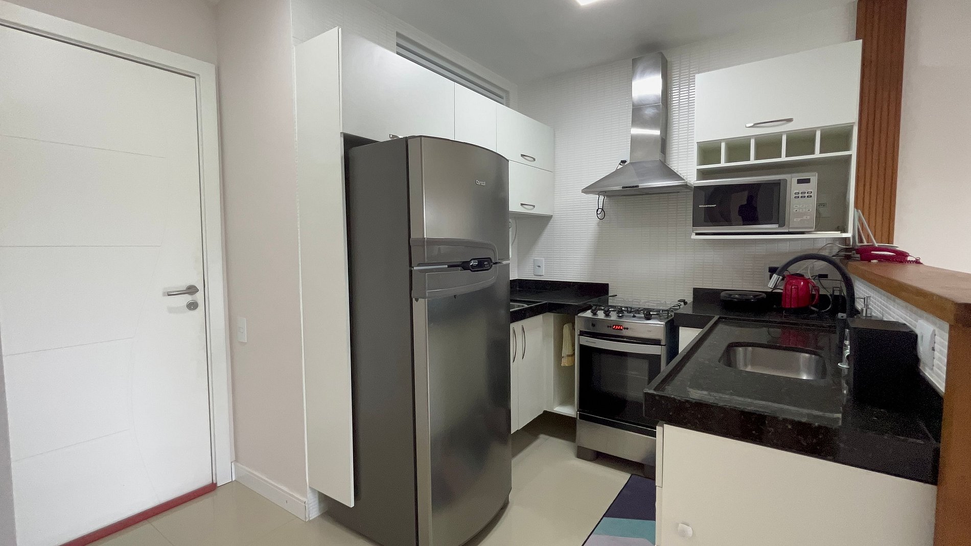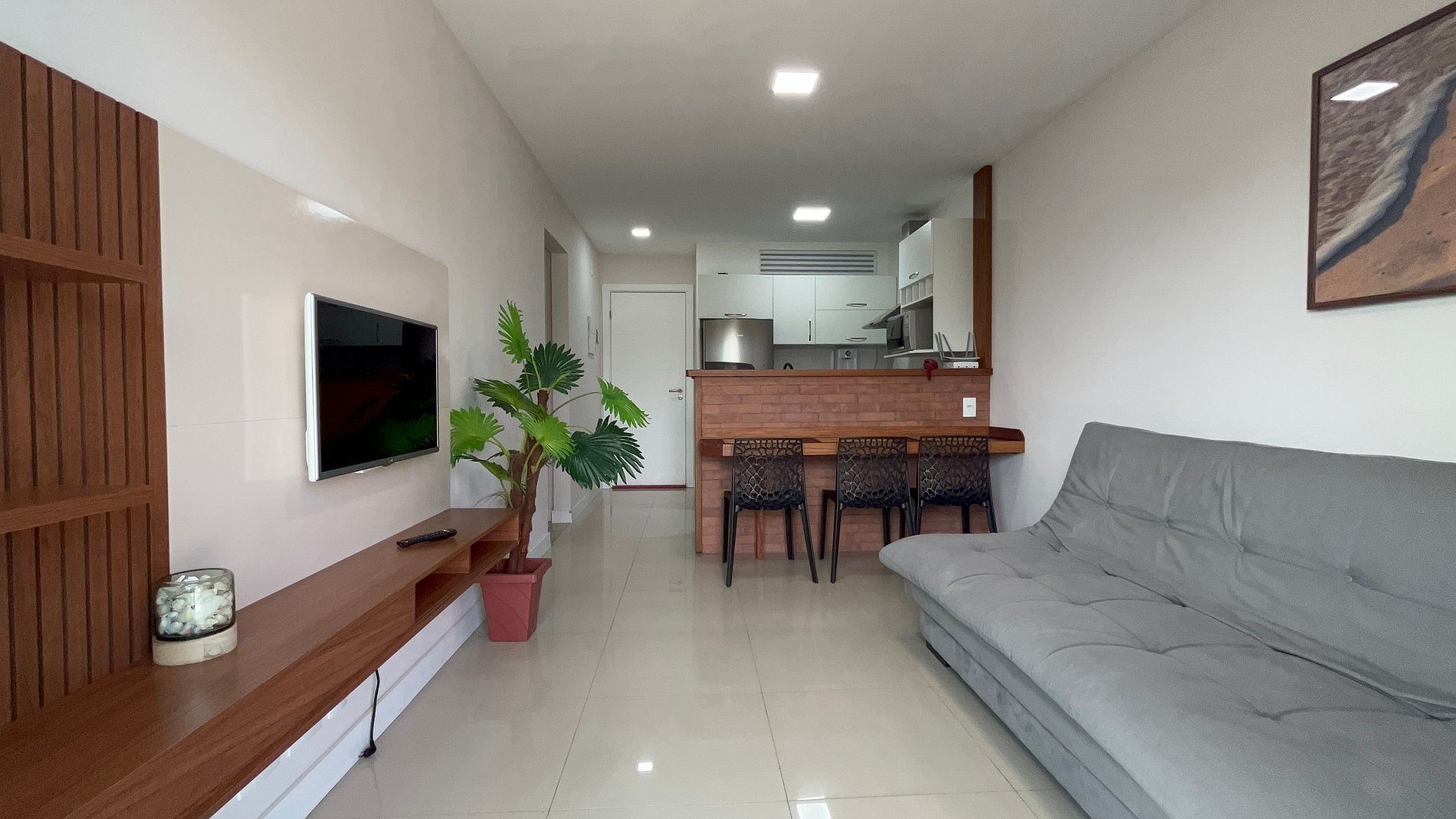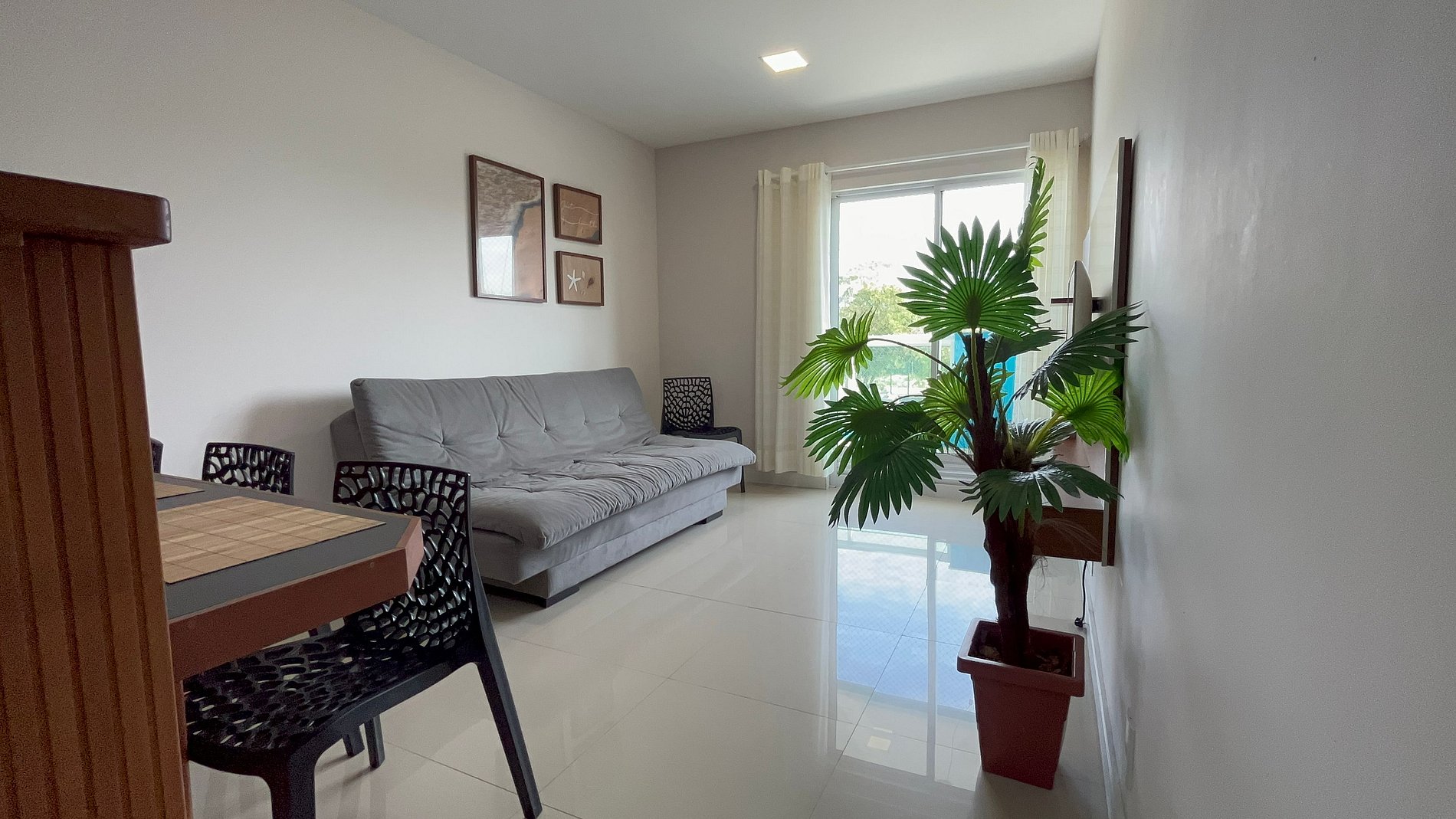 Apartamento no 2º andar para até 6 pessoas, com varanda. 2 quartos com ar-condicionado: 1 suíte com cama de casal e 1 quarto com cama de casal e auxiliar de solteiro. Sala com sofá cama e Smart TV. Cozinha equipada em conceito aberto com ilha para 3 lugares. Banheiro social. Roupas de cama e banho inclusas.